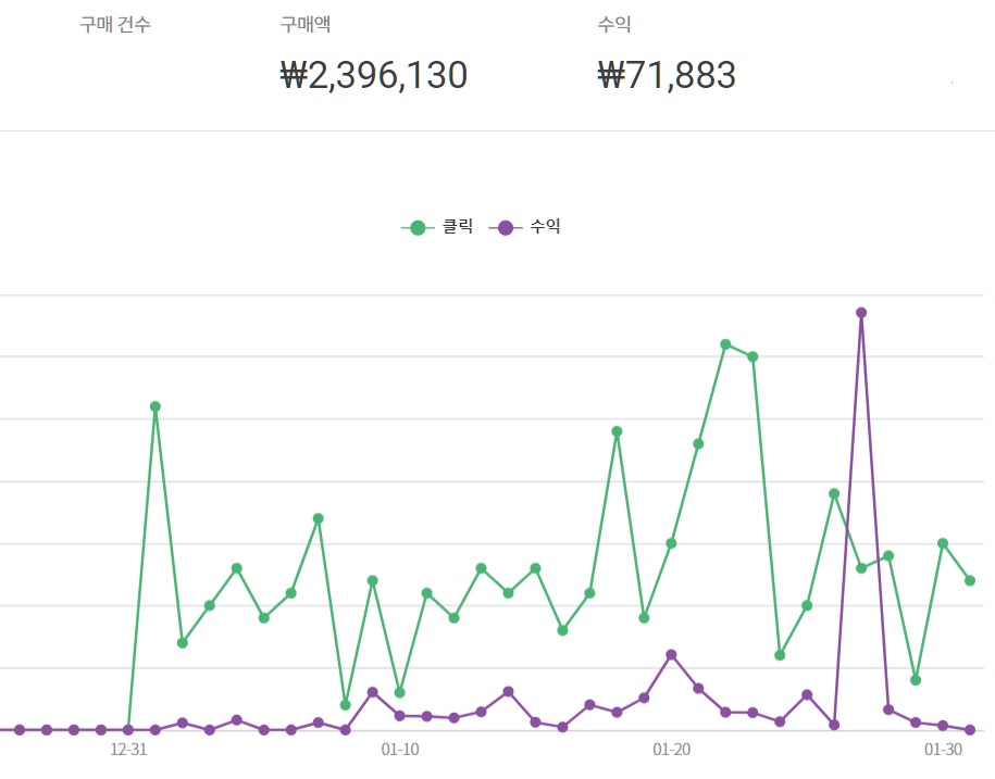 1월 1일부터 1월 31일까지 첫 실적을 정리해 봤다.